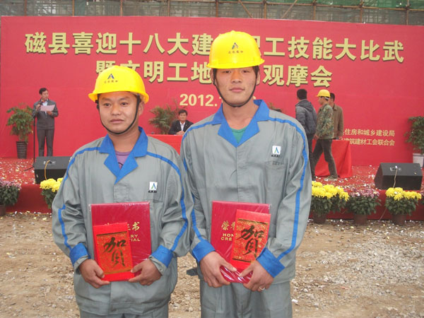 本次職工技能比武共有12家單位參加,通過激烈角觸,第四工程公司寶盛世紀B區(qū)二期項目部選送的鋼筋組一舉奪得小組第一名、焊接組奪得小組第二名,項目部同時被授予2012年磁縣建筑職工技能比武特別貢獻單位。