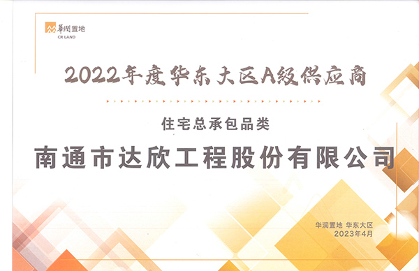 達欣集團自2018年與華潤置地合作以來,在無錫、南京、南通、蘇州等地,依據(jù)完善的工程質(zhì)量管理體系,項目品質(zhì)及履約標準先后得到華潤置地大區(qū)公司、華潤置地的年度贊譽與肯定。