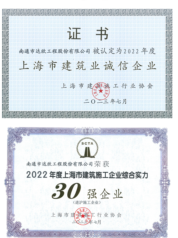 近日,上海市建筑施工行業(yè)協(xié)會(huì)公布了《2022年度上海市建筑施工企業(yè)綜合實(shí)力數(shù)據(jù)統(tǒng)計(jì)結(jié)果的通知》。集團(tuán)第一工程公司連續(xù)十六年獲評(píng)“2022年度上海市建筑施工企業(yè)綜合實(shí)力30強(qiáng)企業(yè)”和“2022年度上海市建筑業(yè)誠信企業(yè)”稱號(hào)。